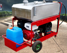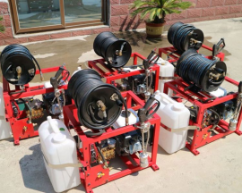 手推式細(xì)水霧:采用高效四沖程風(fēng)冷發(fā)動(dòng)機(jī)與高壓泵浦配套制造的。輕便緊湊、啟動(dòng)方便、出水迅速、油耗量低、壓力大、揚(yáng)程高、滅火效率高。